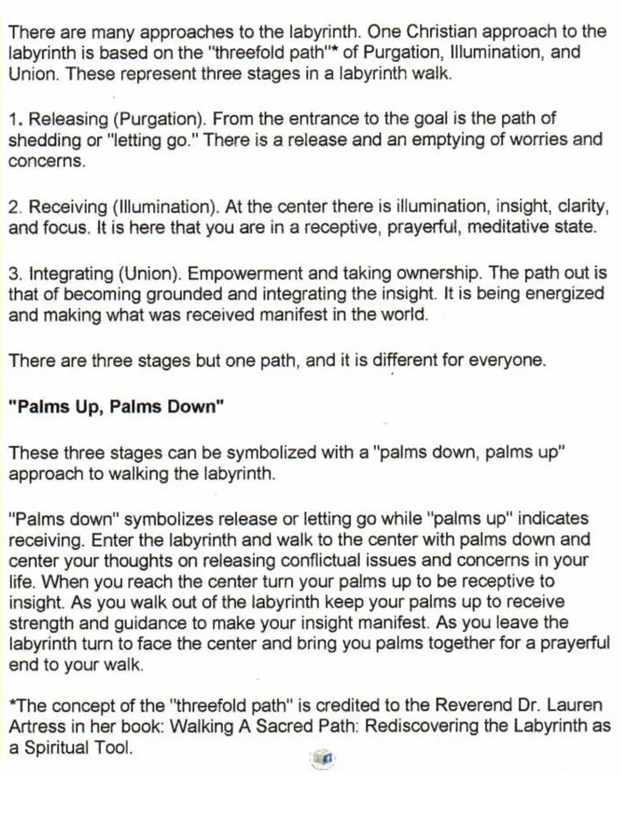 Below our photos are some suggestions on walking the labyrinth. It can be a powerful tool for prayer and meditation. We hope you're able to make some time to enjoy it. Thank You
